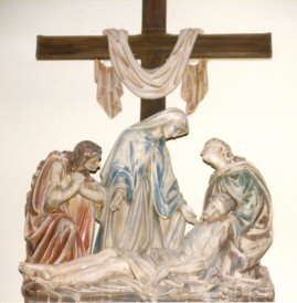 Consider how the disciples carried the body of Jesus to its burial, while His holy Mother went with them and arranged it in the sepulcher with her own hands. They then closed the tomb and all departed.