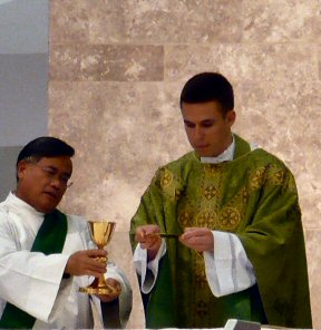 Priest: May this mingling of the Body and Blood of our Lord Jesus Christ bring eternal life to us who receive it.