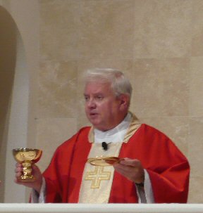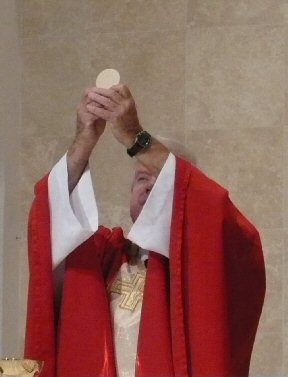 Red priestly vestments symbolize the supreme sacrifice of life for the love of